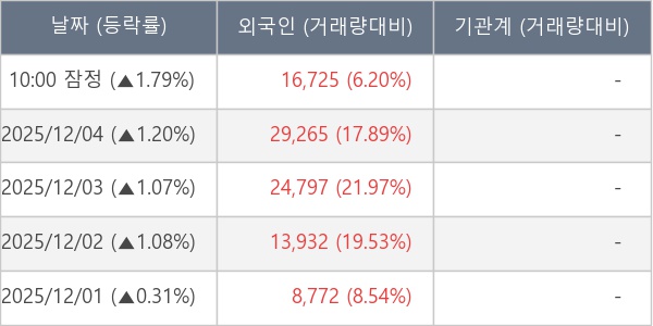 [표] 외국인ㆍ기관 순매매량 (단위 주)