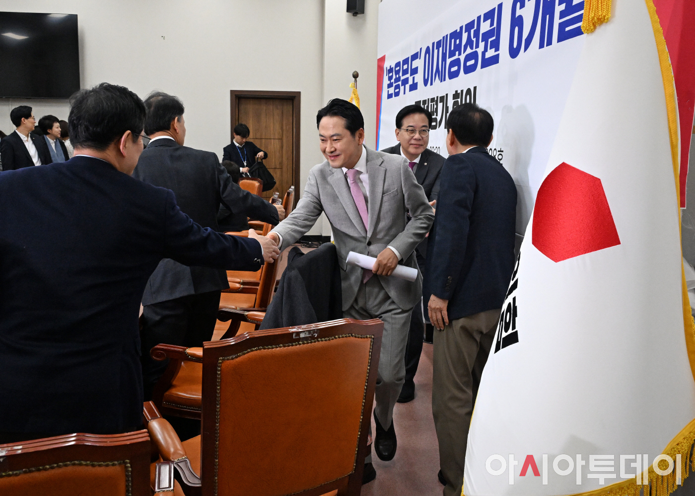 아시아투데이 송의주 기자 = 장동혁 국민의힘 대표가 5일 국회에서 열린 '혼용무도' 이재명 정권 6개월 국정평가 회의에 참석하고 있다. 혼용무도(昏庸無道), '(군주가) 어리석고 무능하여 (세상에) 도리가 없다'는 뜻으로, 어리석은 지도자가 세상을 어지럽고 무도하게 만든다는 의미의 사자성어.