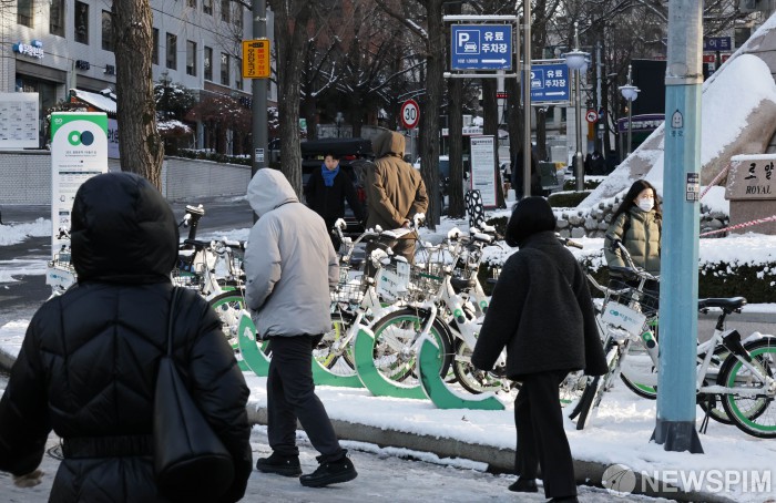 [서울=뉴스핌] 양윤모 기자 = 밤사이 내린 폭설과 한파로 도로 곳곳이 얼어붙은 5일 오전 서울 종로구 광화문에서 시민들이 출근을 하고 있다. 2025.12.05 yym58@newspim.com