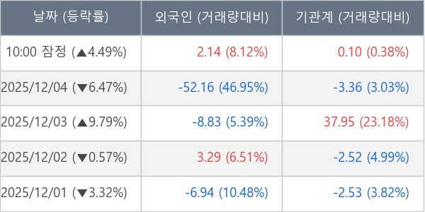 [표] 주요 기관별 순매매량 (단위 만주)