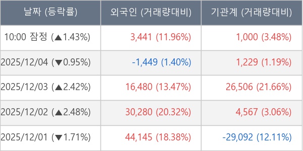 ※ 사모펀드 등 일부 기관의 순매매량은 표시되지 않음
