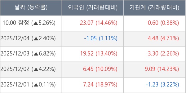[표] 주요 기관별 순매매량 (단위 만주)