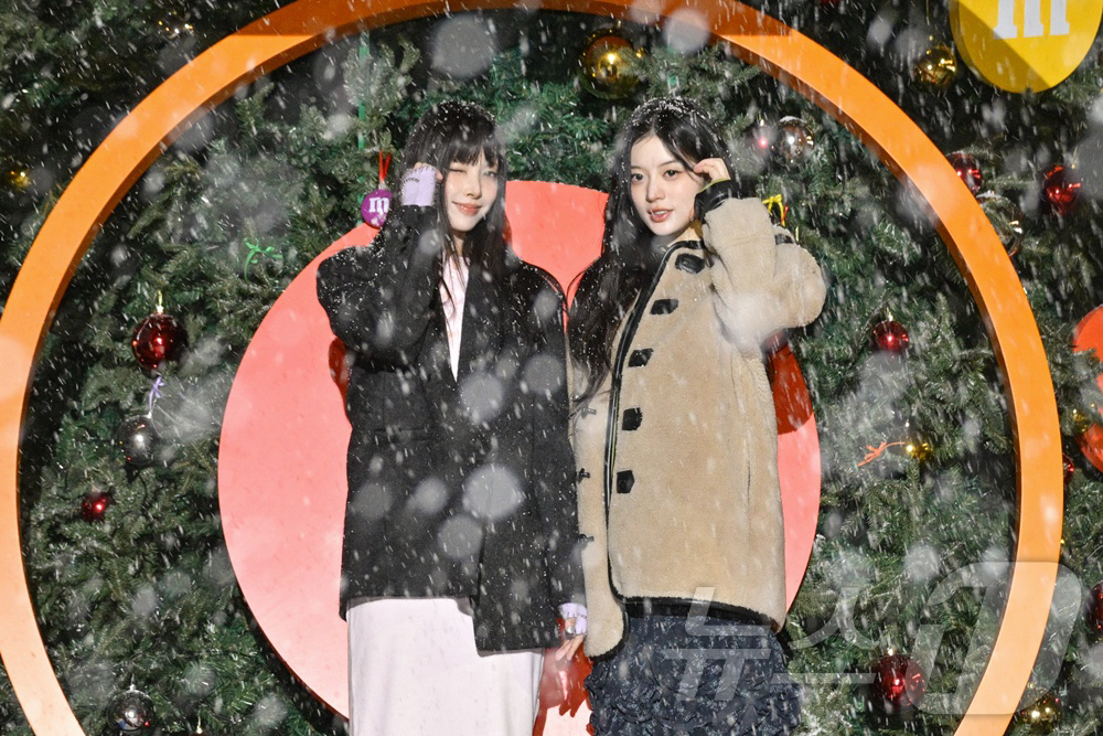 (서울=뉴스1) = 지난 4일 서울 남산타워 앞 플라자에서 열린 매지컬 홀리데이 팝업 행사에서 엠엔엠즈 아시아 앰버서더 K-팝 걸그룹 아일릿 멤버인 윤아와 민주가 팬들에게 인사를 전하고 있다. (한국마즈 제공. 재판매 및 DB 금지) 2025.12.5/뉴스1