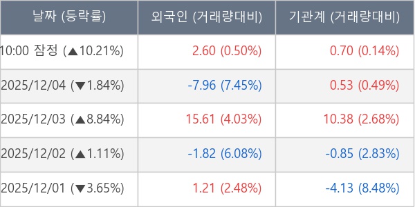 [장중수급포착] 우진, 외국인/기관 동시 순매수… 주가 +10.21%