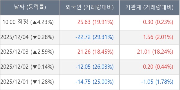[장중수급포착] 대우건설, 외국인/기관 동시 순매수… 주가 +4.23%