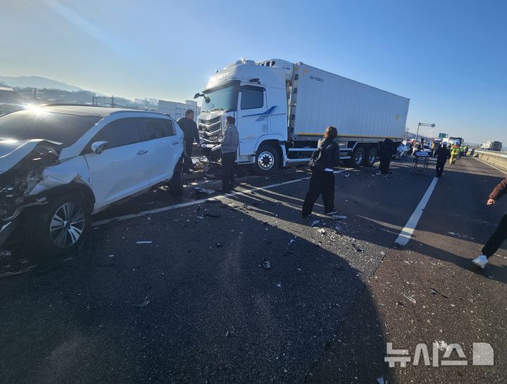 [청주=뉴시스] 서주영 기자 = 5일 오전 9시7분께 청주시 청원구 3순환로 오동분기점에서 14t 화물차가 신호대기하고 있던 차량 1대를 추돌했다.