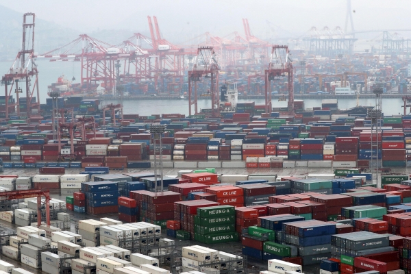 부산항 신선대부두에 수출입 화물이 쌓여 있다. |
