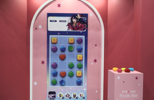 구체적으로 스탬프 투어 3종과 미스터리어스 월, 럭키드로우로 구성된 체험형 이벤트를 진행하다 보면 최애의 아이 퍼즐 스타의 게임성을 자연스럽게 파악할 수 있다. 3매치 퍼즐 모양이 그려진 부직포 벽에 블록을 던져 세로 또는 가로로 3칸이 맞춰지면 미션 성공으로, , 럭키 드로우 1회 도전권과 스탬프 1개를 제공받는다.