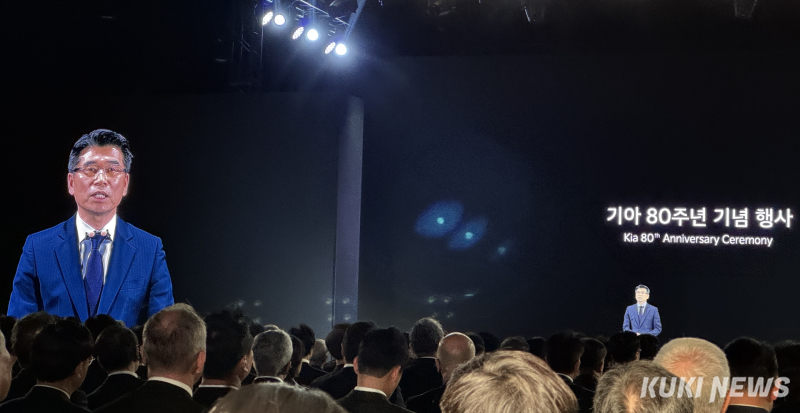 기아는 5일 경기도 용인 비전스퀘어에서 창립 80주년 기념행사를 열고 과거와 현재, 그리고 미래 모빌리티 전략을 공유했다. 행사에는 송호성 기아 사장, 정의선 현대차그룹 회장을 비롯한 주요 인사와 전·현직 임직원 약 400명이 참석했다.