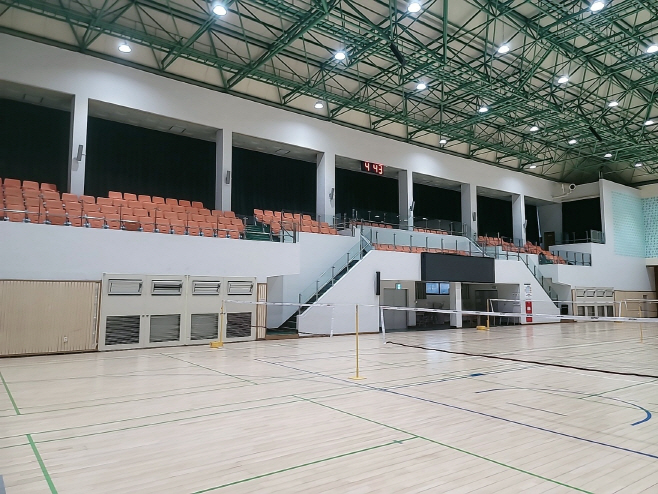 아시아투데이 장성훈 기자 = 경북 상주시 시민운동장 실내체육관 구관이 리모델링 공사를 끝내고 산뜻하게 바뀌었다.