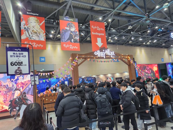 오전 10시부터 인파가 몰린 스마일게이트 에픽세븐 부스/사진=이수호 기자 |