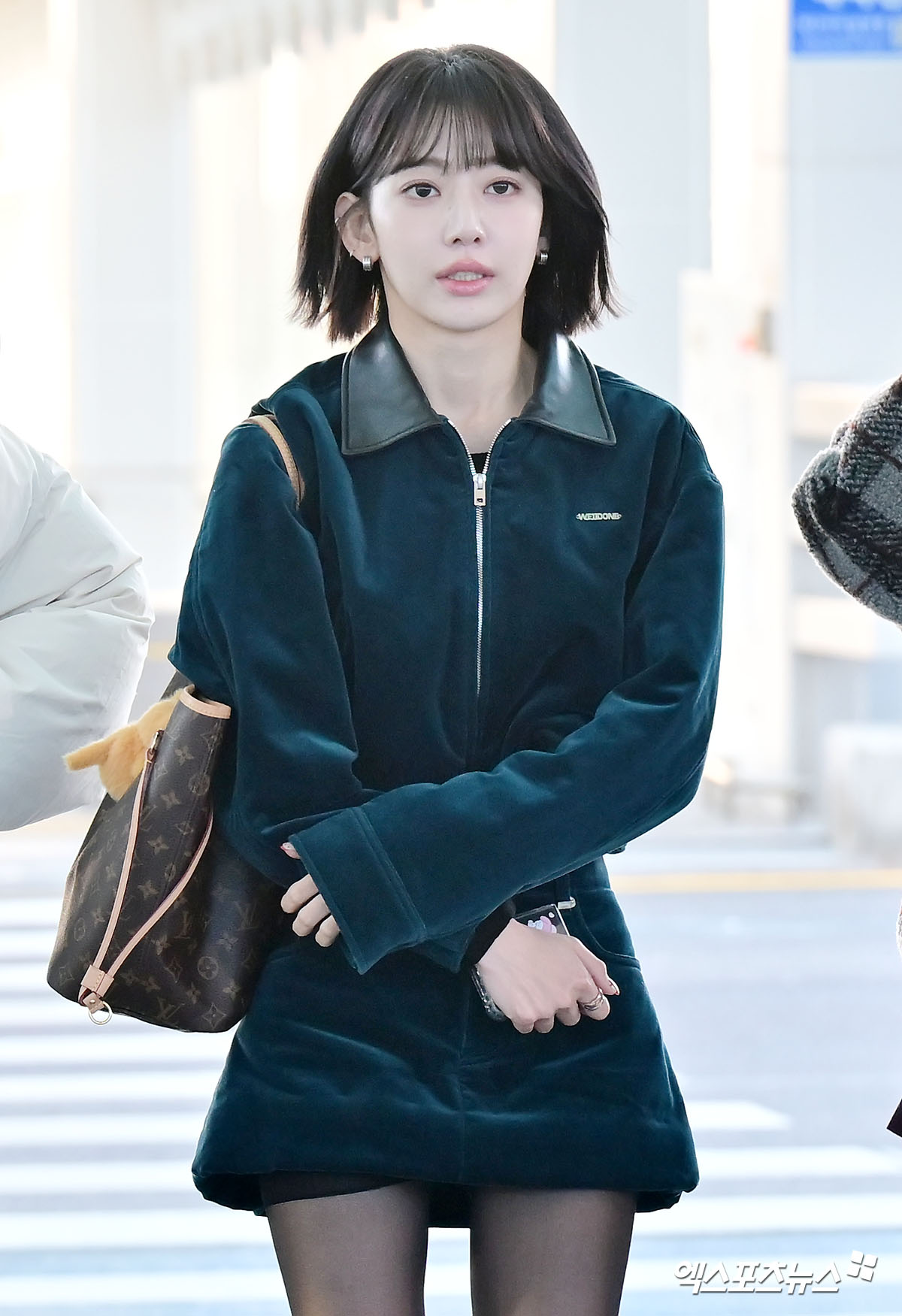 르세라핌 사쿠라가 출국장으로 향하고 있다.