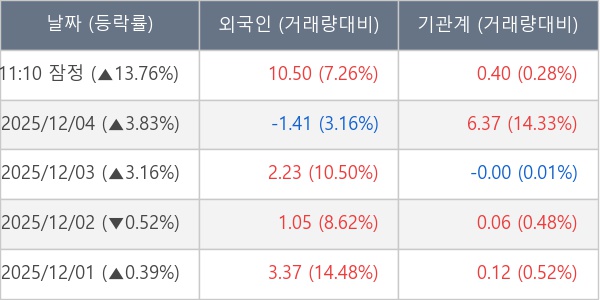 [장중수급포착] 한국무브넥스, 외국인/기관 동시 순매수… 주가 +13.76%