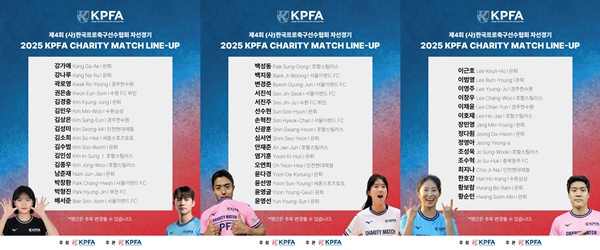 한편, 제4회 한국프로축구선수협회 자선경기는 12월 13일 동서울대학교 체육관에서 개최되며, 자세한 행사 내용 및 티켓 정보는 추후 선수협 공식 SNS 채널을 통해 공지될 예정이다. 아울러 선수협 자선경기에 참여할 선수명단을 확정하는 대로 공지하기로 했다.