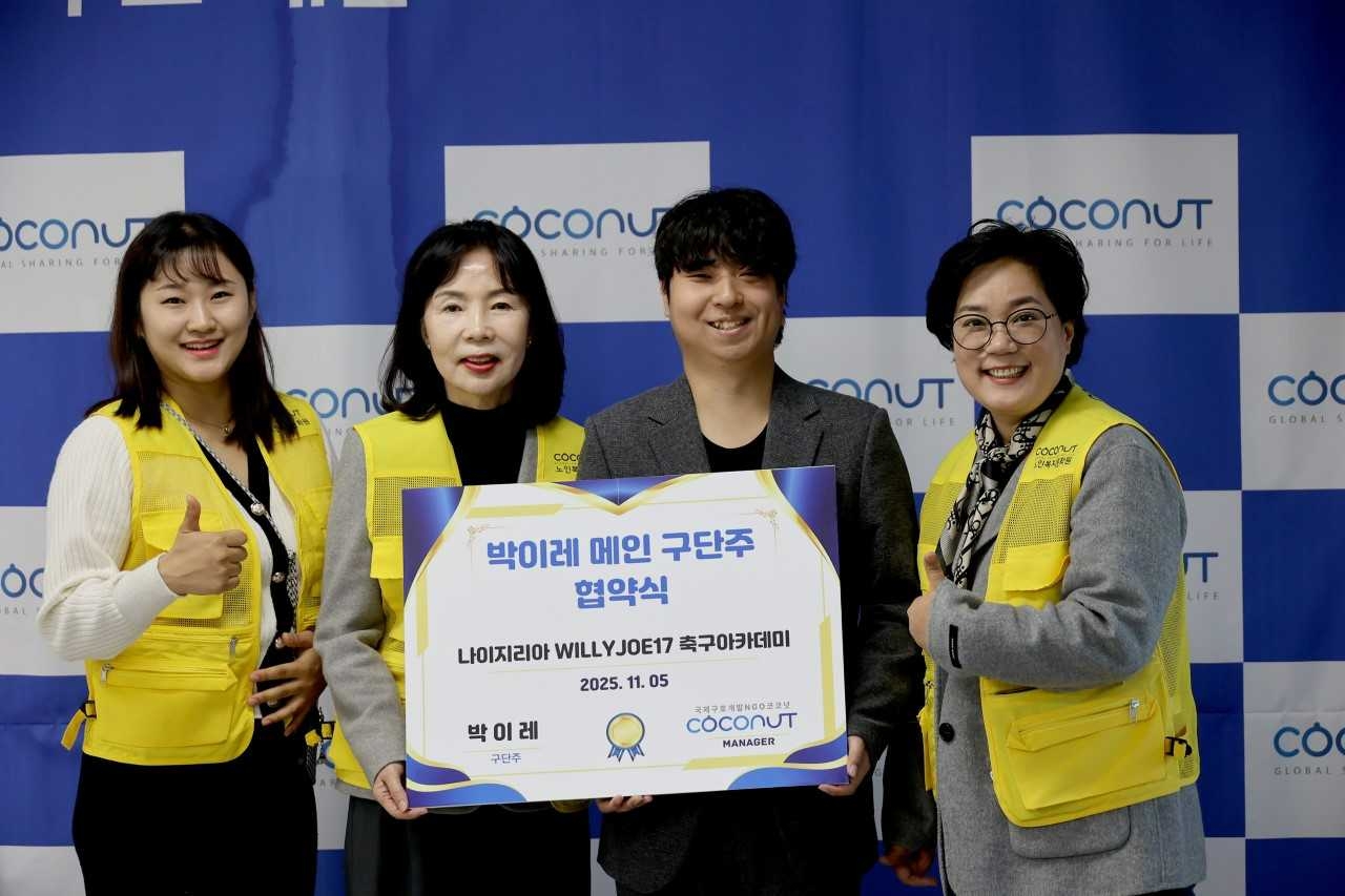 코코넛 한국본부는 박이레(22) 구단주가 나이지리아 WILLYJOE17 축구클럽에 매달 50만원을 지원하는 협약을 체결했다고 5일 밝혔다. 이번 지원은 올해 11월부터 시작됐으며, 서아프리카 나이지리아 라고스주 이코로두 지역에서 운영되는 3개 축구 클럽을 대상으로 한다.