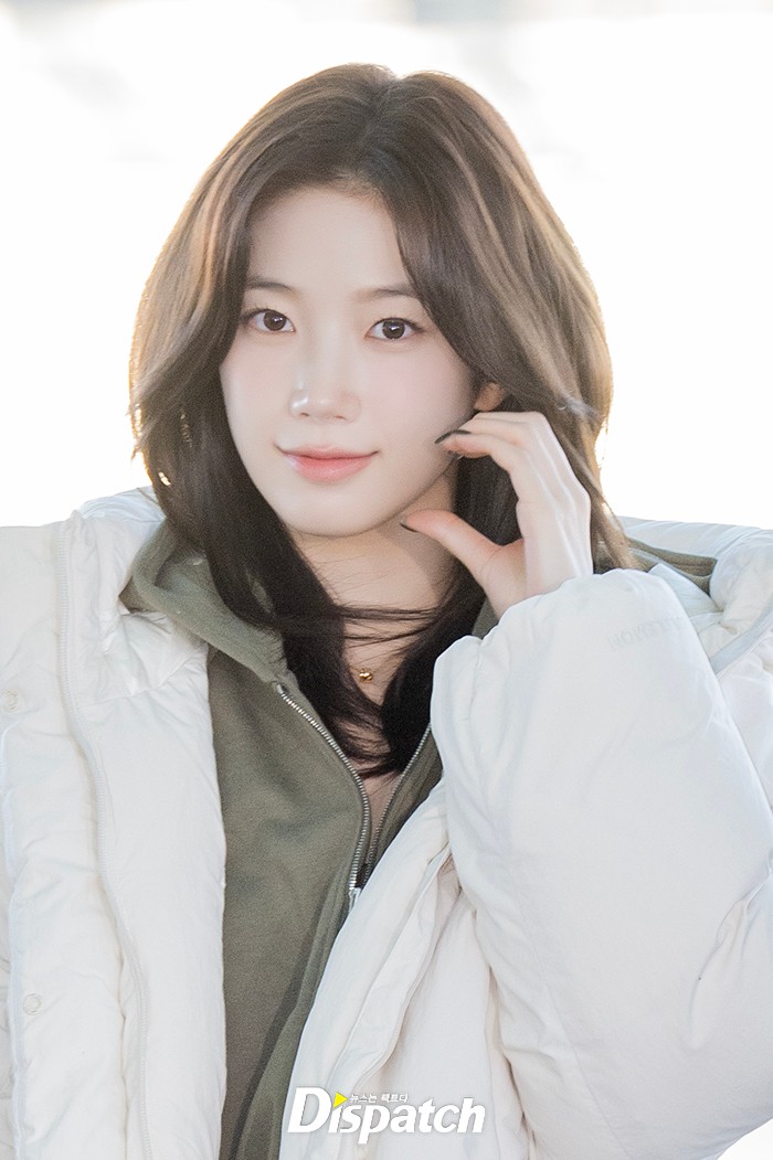 카즈하는 패딩점퍼와 조거팬츠로 멋을 냈다. 인형같은 미모가 시선을 사로잡았다.