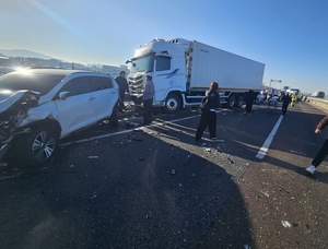 [중부매일 조재권 기자] 5일 오전 9시 7분께 청주시 청원구 3순환로 오동분기점 인근에서 14톤 냉동 탑차가 신호 대기 중인 차량을 들이받아 모두 9대가 연쇄 추돌하는 사고가 발생했다.