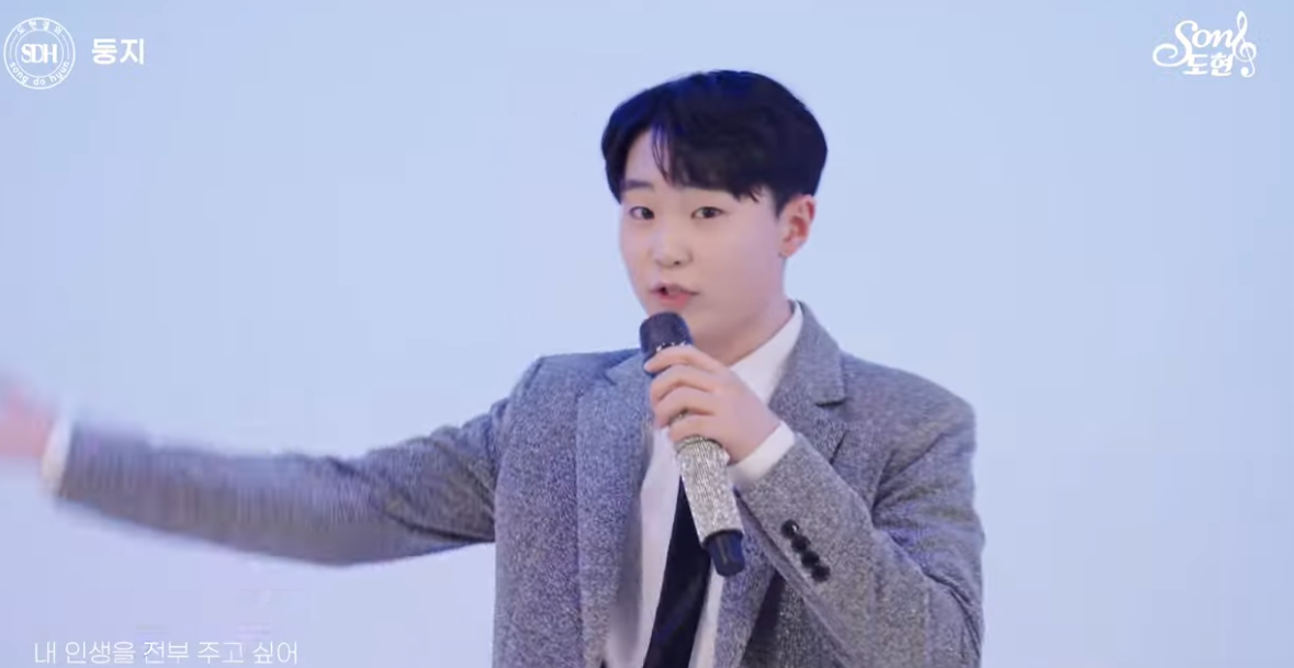영상 속 송도현은 회색 수트를 착용하고 무대 위에 등장했다. 반짝이는 마이크를 든 채 안정된 자세를 유지하며 퍼포먼스를 시작했다.