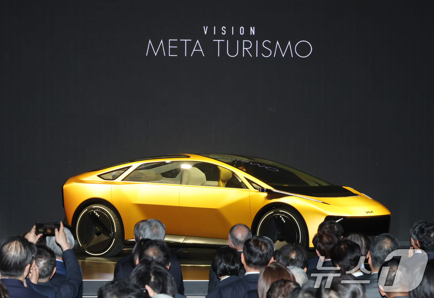 (용인=뉴스1) 김영운 기자 = 5일 경기 용인시 처인구 기아 비전스퀘어에서 열린 '기아 80주년 기념식'에서 다가올 80년 비전을 담은 미래 콘셉트카 ‘비전 메타투리스모’를 공개되고 있다. 2025.12.5/뉴스1