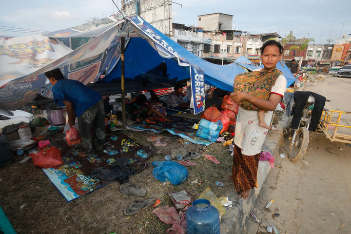 [아체 타미앙=AP/뉴시스] 4일(현지 시간) 인도네시아 수마트라섬 아체 타미앙 이재민들이 임시로 만든 천막에서 생활하고 있다. 2025.12.05.