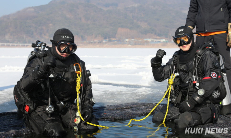 119구조대 아이스다이빙 훈련(양구소방서 제공) |