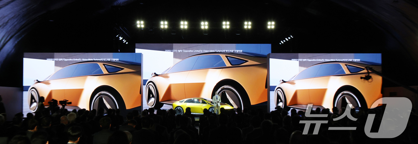 (용인=뉴스1) 김영운 기자 = 카림 하비브 기아 글로벌디자인 담당 부사장이 5일 경기 용인시 처인구 기아 비전스퀘어에서 열린 '기아 80주년 기념식'에서 다가올 80년 비전을 담은 미래 콘셉트카 ‘비전 메타투리스모’를 공개하고 있다. 2025.12.5/뉴스1