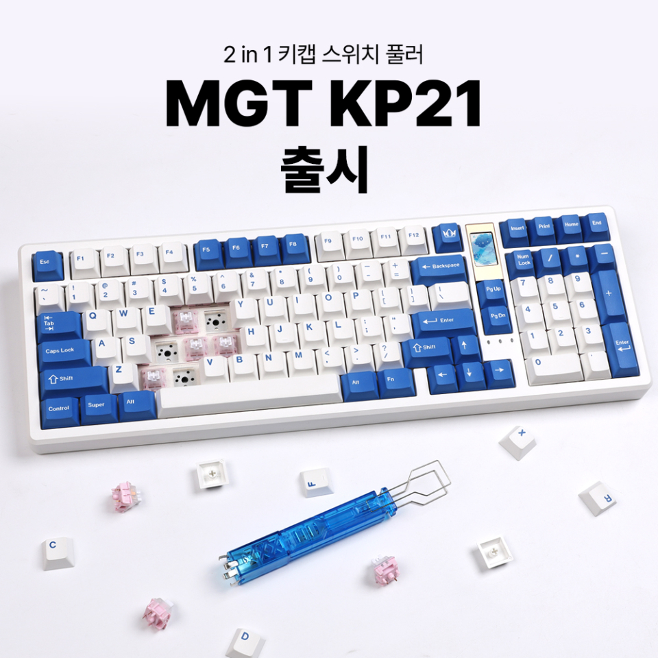 이번에 선보인 'MGT KP21'은 키보드 커스텀이나 청소 시 필수적인 키캡 제거와 스위치 교체 기능을 하나의 도구에 담은 올인원 툴이다. 기존의 금속 와이어 형태의 저가형 풀러가 가진 단점인 보관의 불편함과 팁 변형 문제를 획기적으로 개선한 것이 특징이다.