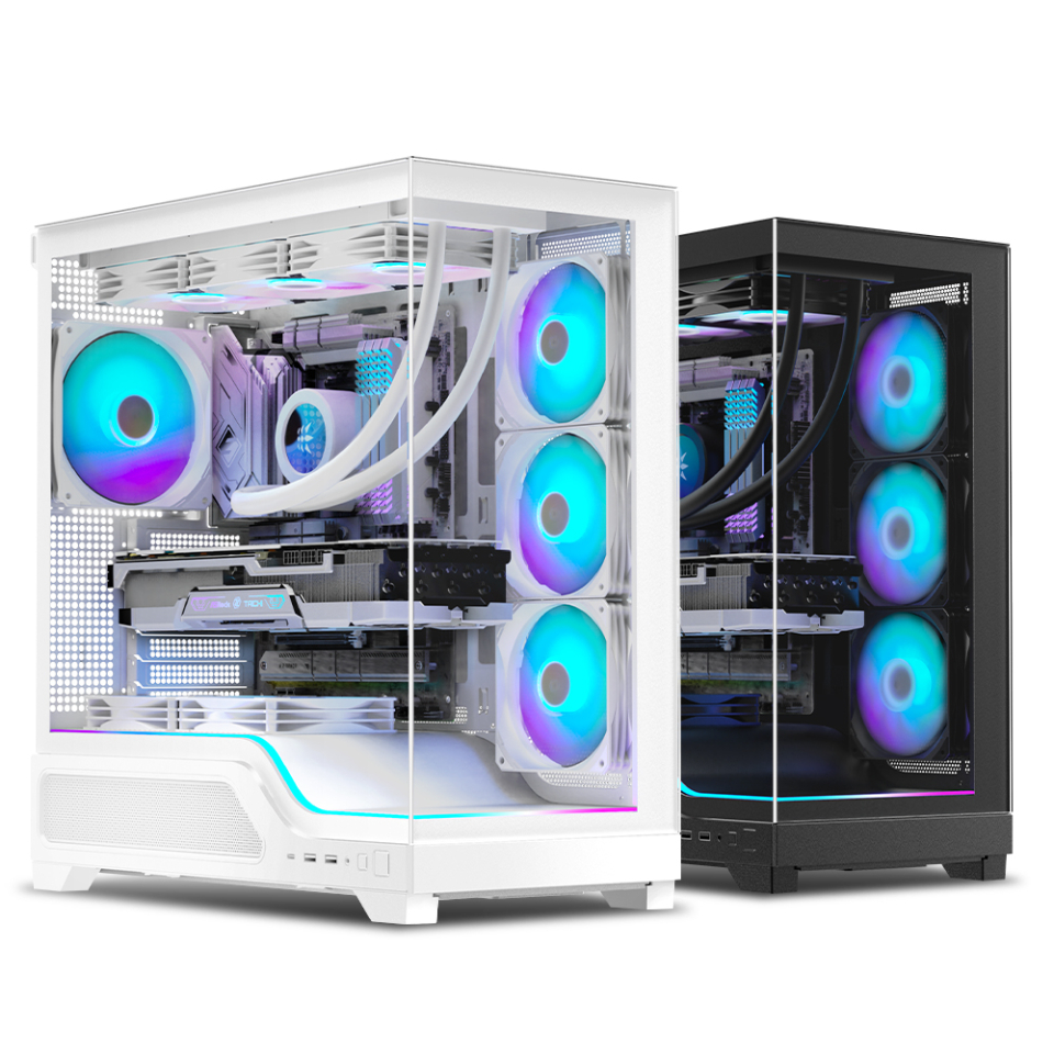 전면과 좌측면에는 강화유리를 적용해 내부를 넓게 드러내는 풀 파노라믹 디스플레이를 구현했으며, 기본 구성으로 제공되는 HDB 쿨링팬 4개(측면 120mm 3개, 후면 140mm 1개)는 화려한 조명 효과와 함께 안정적인 쿨링 성능을 제공한다.
