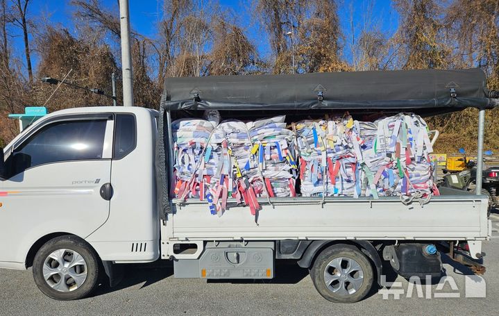 [여주=뉴시스]여주시에서 수거된 폐현수막(사진=여주시 제공)2025.12.05.photo@newsis.com |