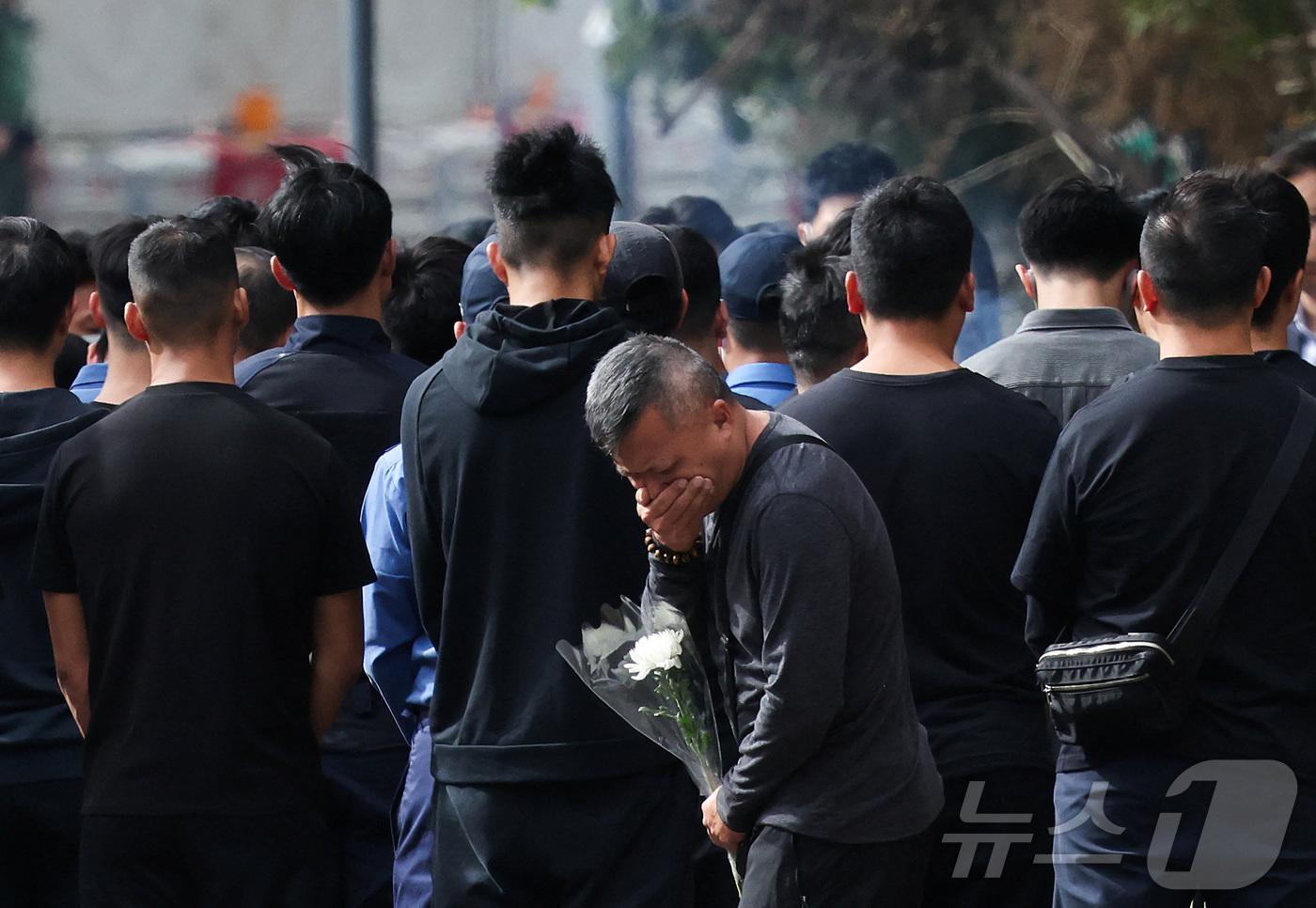 2일(현지시간) 중국 홍콩 타이포의 왕푹 코트 아파트 단지 옆에서 열린 화재 희생자 추모식에 참석하고 있다. 2025.12.02. ⓒ 로이터=뉴스1 ⓒ News1 이정환 기자 |