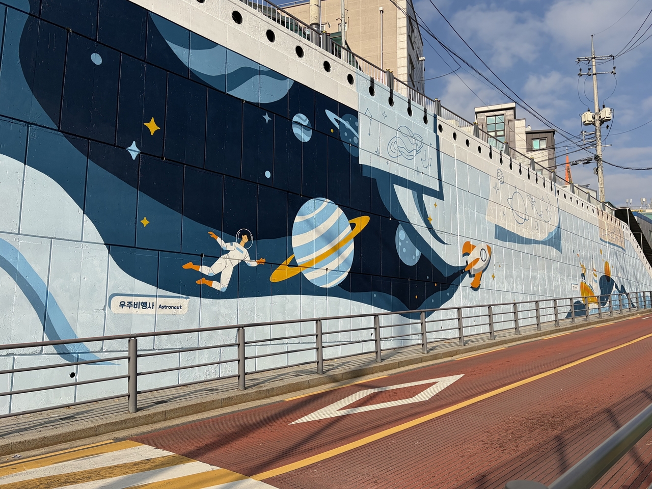 성북구 상월곡동 월곡중학교 앞 옹벽에 새로운 벽화 적용을 통한 거리 미관 개선