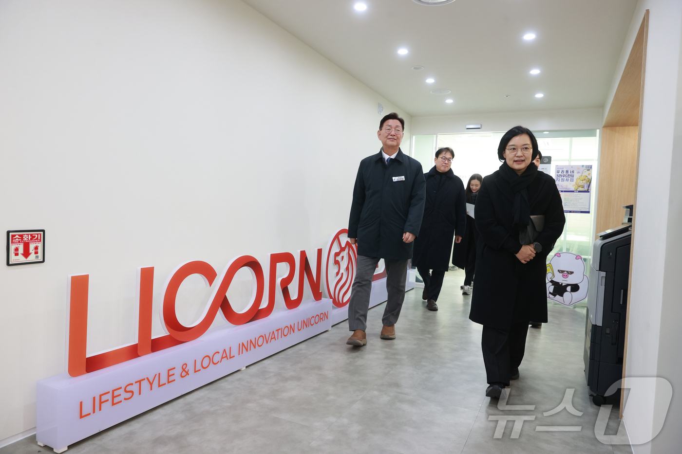 (서울=뉴스1) = 한성숙 중소벤처기업부 장관이 5일 대전 라이콘타운을 방문해 현장을 둘러보고 있다. (중소벤처기업부 제공. 재판매 및 DB 금지) 2025.12.5/뉴스1