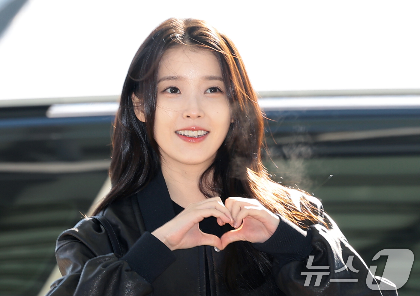 (인천공항=뉴스1) 권현진 기자 = 가수 겸 배우 아이유가 해외 일정을 위해 5일 인천국제공항을 통해 대만으로 출국하기 전 인사를 하고 있다. 2025.12.5/뉴스1