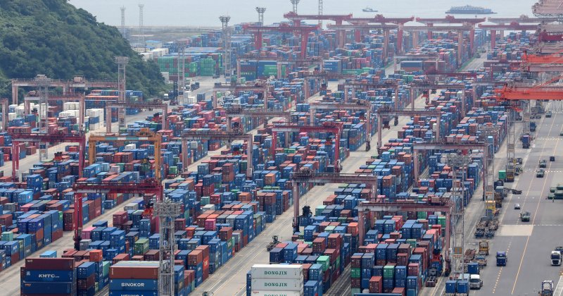 부산항 신선대부두 야적장에 컨테이너가 가득 쌓여 있는 모습(기사 본문 내용과는 무관). 뉴스1 |
