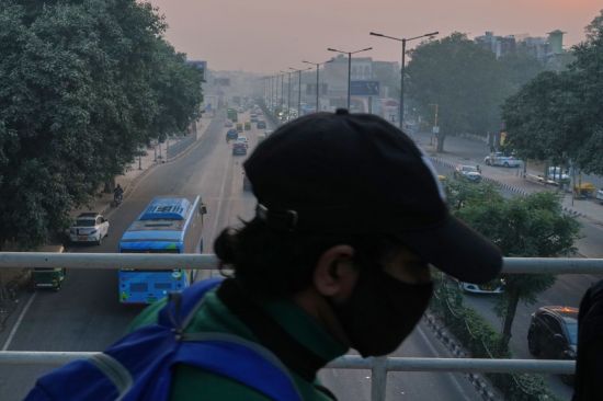 인도 뉴델리에서 스모그가 가득한 아침에 한 학생이 마스크를 쓴 채 다리를 건너고 있다. AP연합뉴스 |