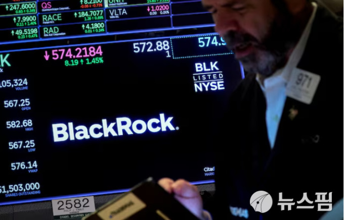 뉴욕증권거래소 거래인과 스크린에 나타난 블랙록 거래 정보 [서울=뉴스핌]박공식 기자 = 2025.12.05 kongsikpark@newspim.com |