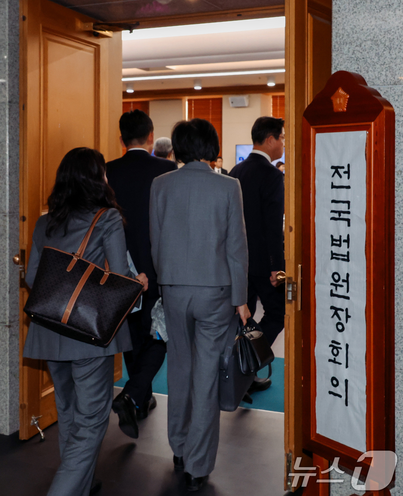 (서울=뉴스1) 장수영 기자 = 전국의 법원장들이 5일 오후 서울 서초구 대법원에서 열린 전국법원장회의에 참석하고 있다. (공동취재) 2025.12.5/뉴스1