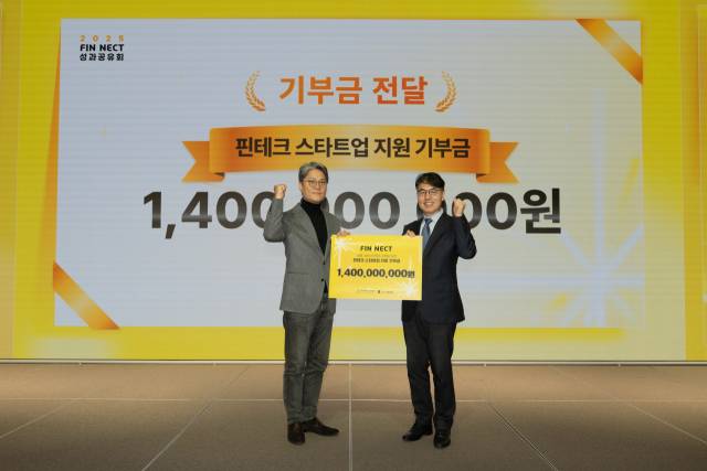 카카오뱅크가 핀테크 기업 성장 지원을 위해 한국핀테크지원센터에 14억 원을 전달했다고 5일 밝혔다. 카카오뱅크는 지금까지 4년 간 총 51억 원을 기부했다.
