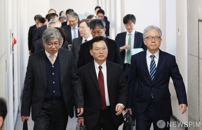 [서울=뉴스핌] 최지환 기자 = 5일 오후 서울 서초구 대법원에서 열린 전국법원장회의에 법원장들이 입장하고 있다. 2025.12.05 choipix16@newspim.com