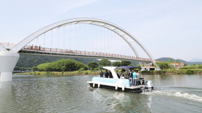 지난 6월27일 울산시가 태화강에 시범 운항한 폰툰보트. 울산시 제공 |