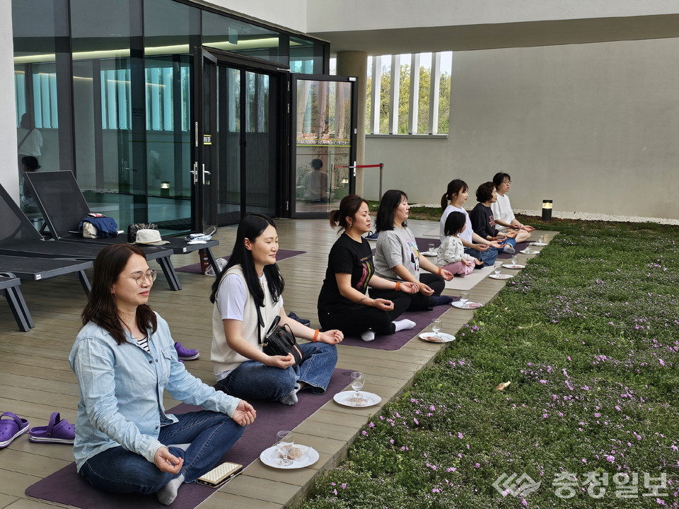 영동군 레인보우힐링센터 주말 힐링 프로그램인 ‘먹기 명상’에 참여한 방문객들이 일상 속 스트레스를 내려놓고 마음을 가다듬고 있다. |