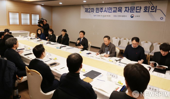 [서울=뉴스핌] 이길동 기자 = 최교진 교육부 장관이 5일 서울 종로구 정부서울청사에서 열린 제2차 민주시민교육 자문단 회의를 주재하며 모두 발언을 하고 있다. 2025.12.05 gdlee@newspim.com