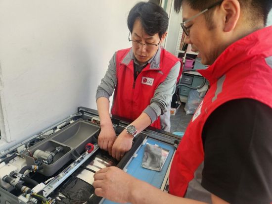LG전자 '라이프스굿' 봉사단에는 최근 5년 간 5000여 명의 임직원이 참여해 2만3000여 명에게 도움의 손길을 전했다. 사진은 LG전자 직원들이 전문 기술 역량을 활용해 제품 점검·수리 봉사를 하는 모습. LG전자 |