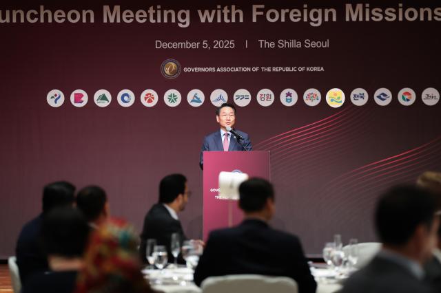 유정복 회장이 서울 신라호텔 영빈관에서 ‘2025년 주한 외국공관장 초청 간담회’에서 인사말을 하고 있다. [사진=대한민국시도지사협의회] |