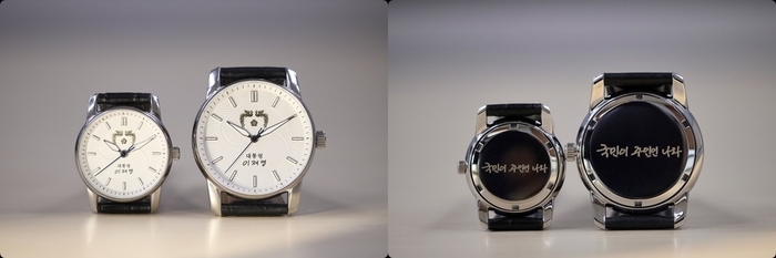 시계 앞면에는 대통령 휘장(봉황 문양)과 함께 이 대통령의 서명이 담겼고, 시계판에는 음각으로 태극 문양이 새겨졌다. 뒷면에는 이 대통령의 자필 글씨체로 ‘국민이 주인인 나라’라는 문구가 각인됐다.