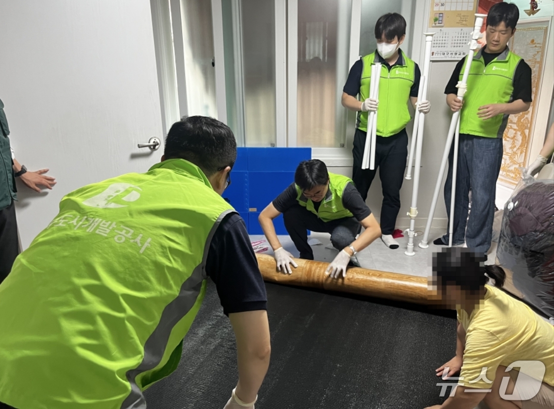 대구도시개발공사 직원들이 취약계층 주거환경 개선사업 일환으로 노후 주택의 장판을 교체하고 있다.(대구도시개발공사 제공, 재판매 및 DB 금지) |