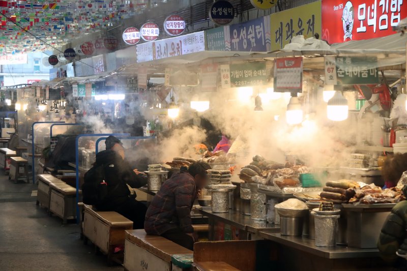 서울 종로구 광장시장 먹거리 상점에서 김이 피어오르고 있다. 뉴스1 제공. |