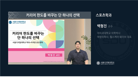 서울디지털대학교(총장직무대행 이영수) 스포츠학과는 지난 4일 ‘커리어 판도를 바꾸는 SDU 학위+자격증 완전정복’ 특별강연을 진행했다고 5일 밝혔다.
