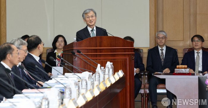 [서울=뉴스핌] 최지환 기자 = 조희대 대법원장이 5일 오후 서울 서초구 대법원에서 열린 전국법원장회의에서 모두발언을 하고 있다. 2025.12.05 choipix16@newspim.com