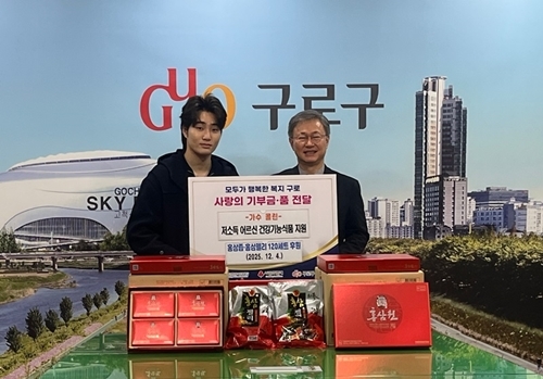 가수 콜린(최문선)이 12월 4일 구로희망복지재단에 홍삼즙·홍삼젤리 120세트를 전달하며 지역 어르신들에게 따뜻한 나눔을 전했다.